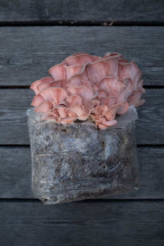 Передо мной прозрачный целлофановый пакет, в который замотана то ли земля, то ли субстрат, то ли какие-то опилки. Рядом — баночка с пульверизатором. Так выглядит набор для выращивания розовых вешенок, урожай которых я планирую получить уже через неделю. Больше ничего не понадобится: ни горшков, ни тем более лесной опушки.