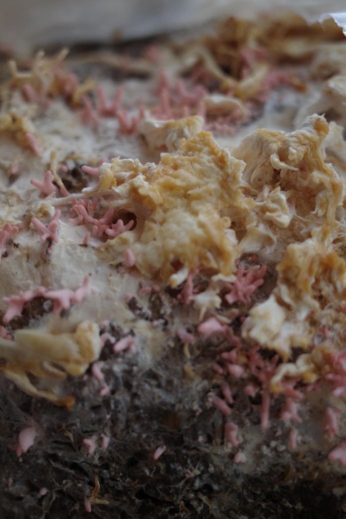 Между тем гастрономический аспект далеко не главное в этом грибном приключении. Сам процесс чуть ли не важнее результата. Ждать урожай — отдельное удовольствие: несколько раз в день я обязательно подходила к грибам и проверяла, нет ли там каких-то изменений. Интереснее всего было наблюдать за их активным ростом: как буквально за пару дней из маленьких червяков грибы превращались в огромные пастельные волны. И надо отметить, что розовый цвет у этих вешенок просто потрясающий!