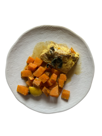 В треске содержится много омега-3 жирных кислот, поддерживающих иммунитет и здоровье сосудов. Ценные жиры трески помогают усвоению витамина А из батата — он поддерживает остроту зрения и молодость кожи. Корнеплод также богат витаминами группы В, необходимыми для нормальной работы мозга, а также кальцием и магнием для тонуса мышц.