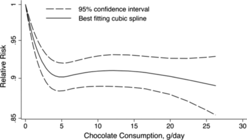 В результате эпидемиологического анализа оказалось, что риск смертности, в том числе от сердечно-сосудистых заболеваний, снижается: на 16% при употреблении высшей категории шоколада и на 12% — если предпочтение отдают шоколаду низкого качества. При этом связь была одинаковой среди людей, имеющих разный вес и уровень холестерина.
