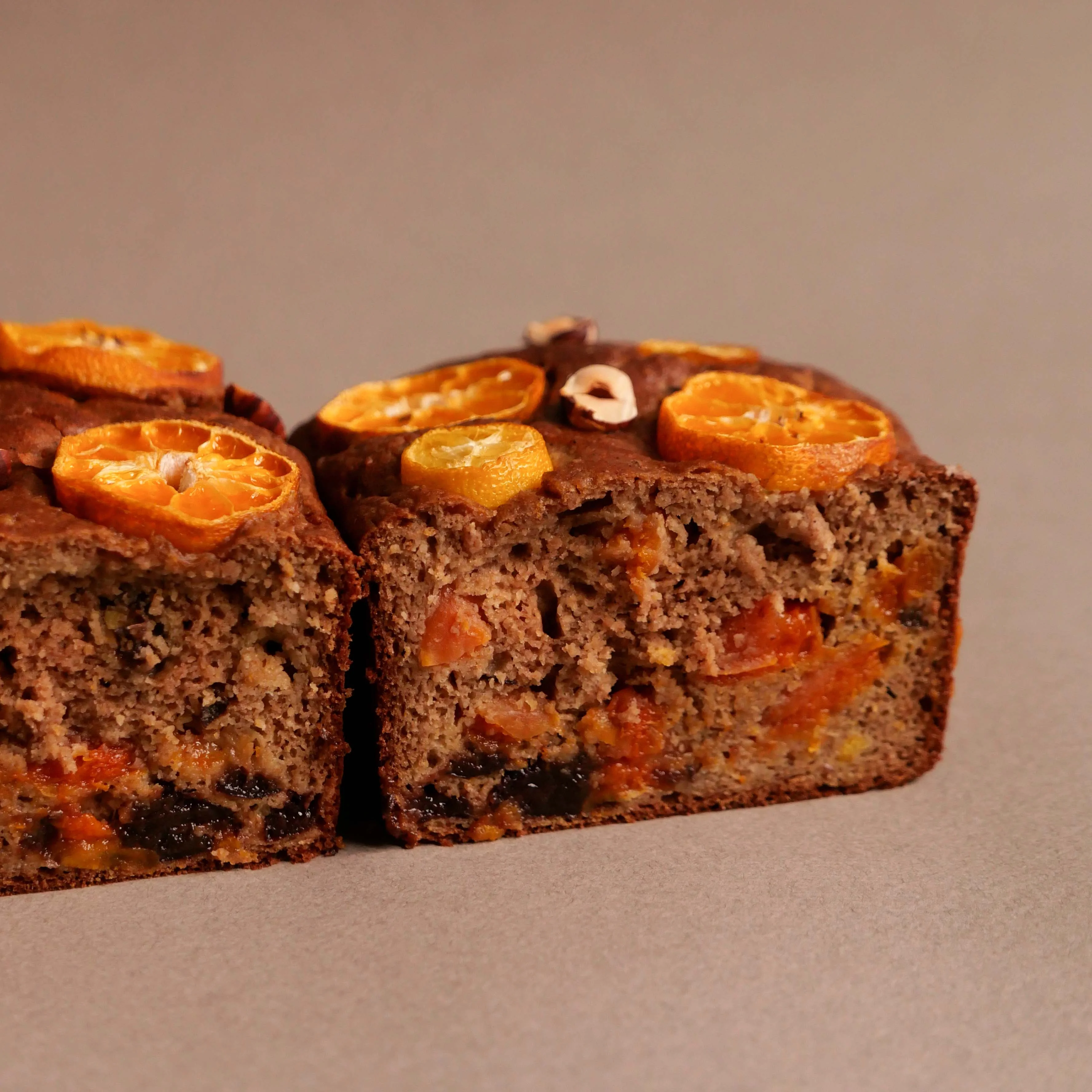 кекс мандариновый 600г (пюре яблочное, яйцо куриное, чернослив, курага, сок мандариновый, мука пшеничная ц/з, мука миндальная, масло сливочное 82,5%, мандарины, фундук, сок лимона, кумкват, масло виноградной косточки, цедра мандарина, цедра лимона, разрыхлитель (сода, лимонный сок), соль, смесь пряностей (корица, мускатный орех, молотый имбирь, кардамон, гвоздика, белый перец, кориандр, бадьян);