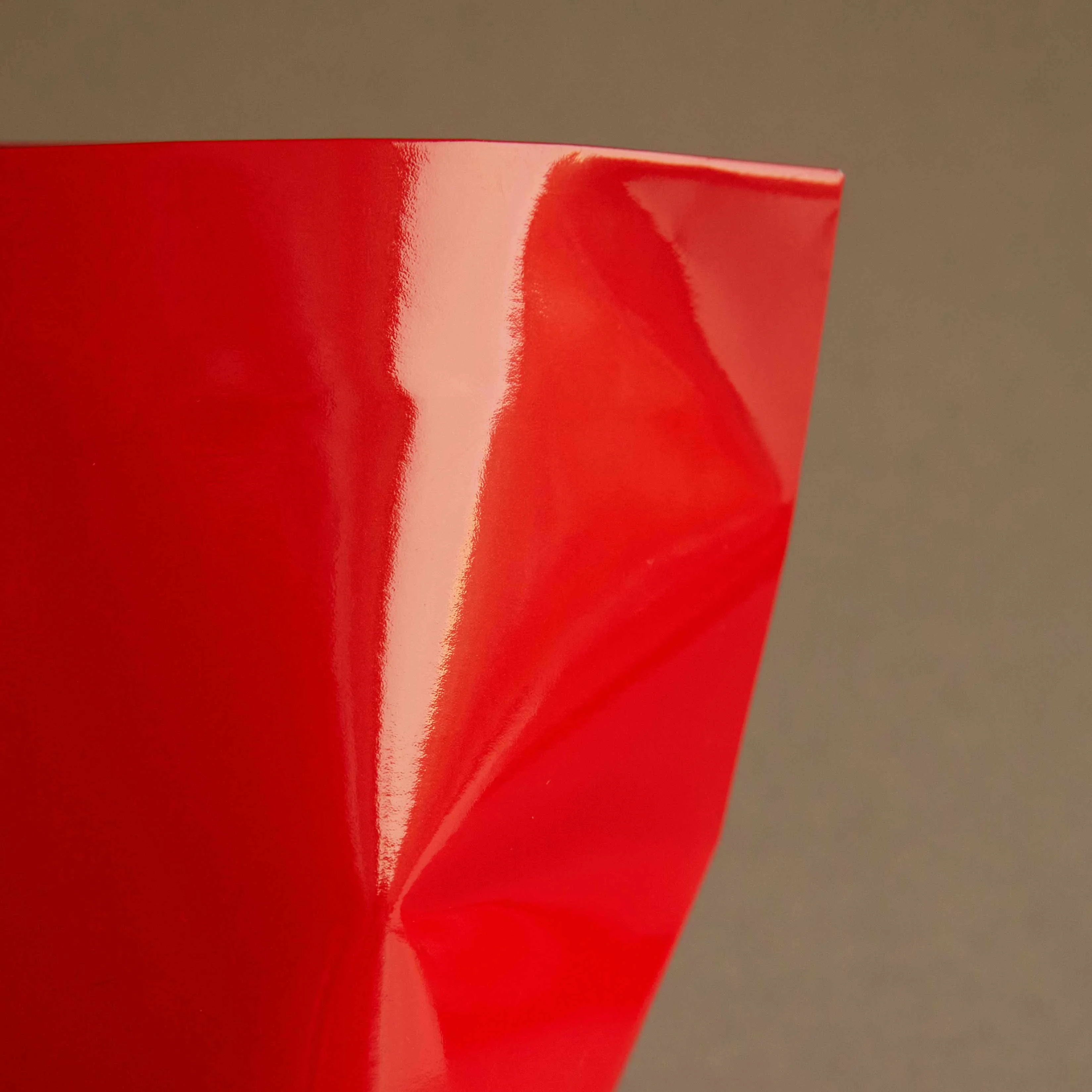 Сумка эксклюзивного дизайна необычной трапециевидной формы, выполнена из плотной бумаги, с глянцевым покрытием. Ручки сделаны из переработанной спрессованной бумаги.