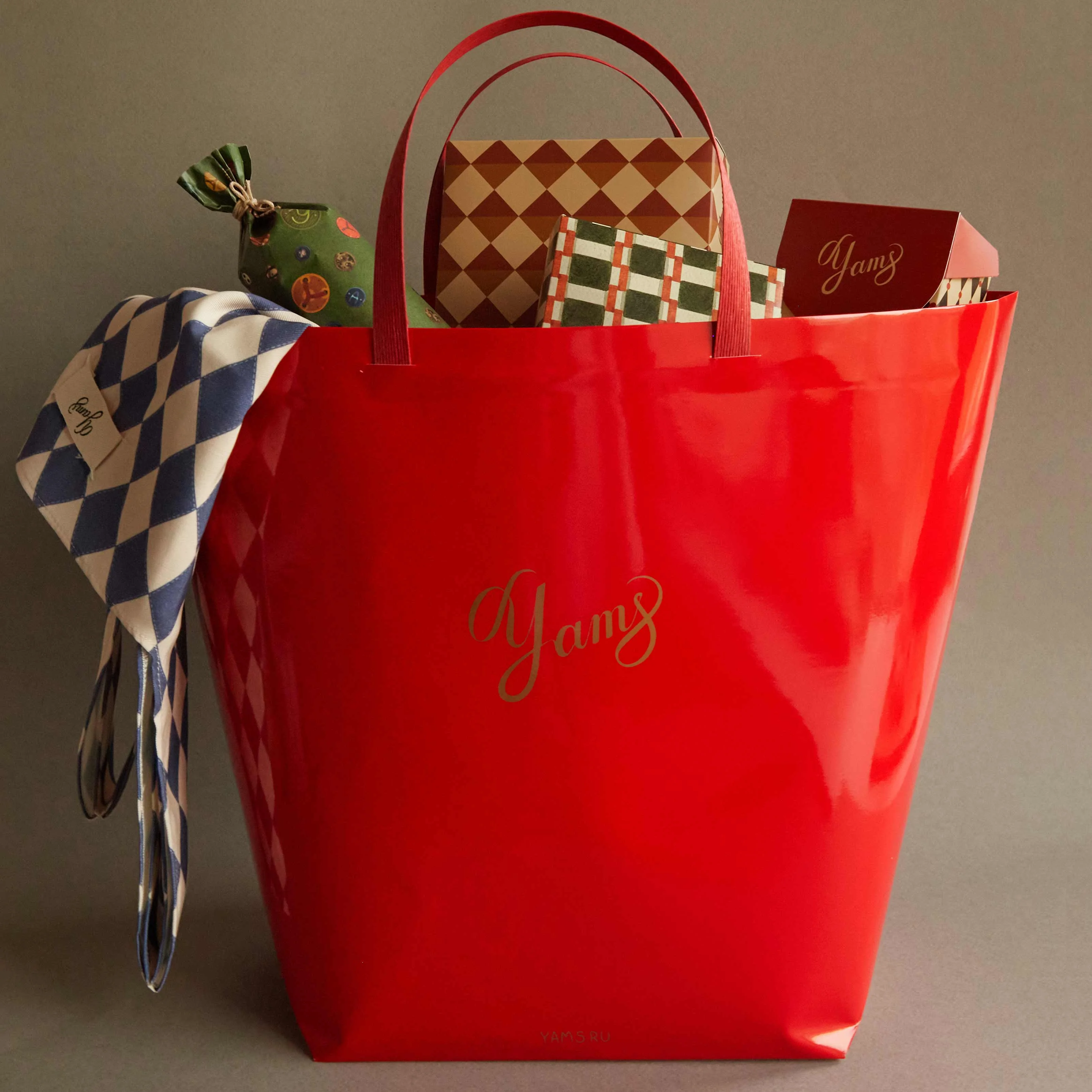 Фирменная сумка Yams с логотипом среднего размера с золотой наклейкой.